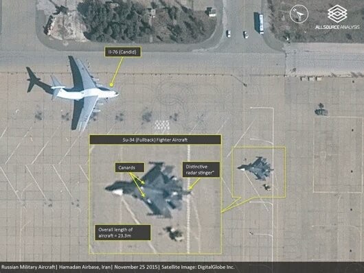 Máy bay Su-34 và IL-76 của không quân Nga tại sân bay Shahid Najeh ở Iran