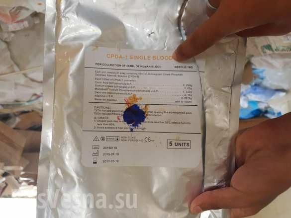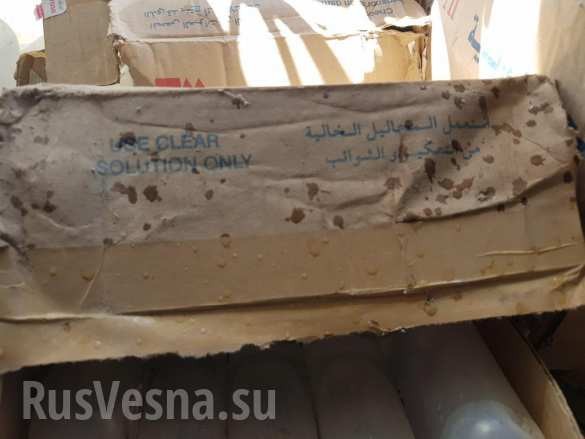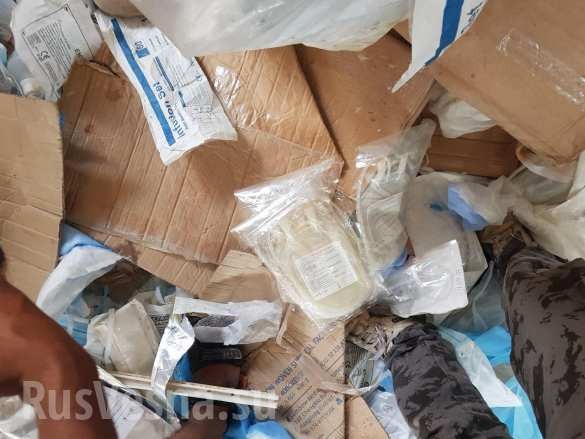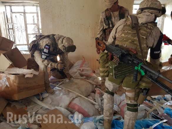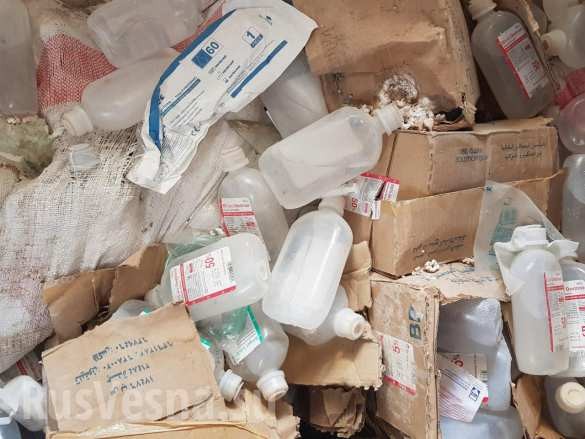 Khi tiến hành các hoạt động rà phá bom mìn và vật liệu nổ, quân cảnh Nga và Syria tìm thấy những chế phẩm y tế và thiết bị đặc biệt truyền máu, có nguồn gốc từ Oman, Đức và Ai Cập.