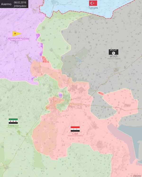 Tình hình chiến sự miền Bắc Aleppo tính đến hết ngày 08.02.2016