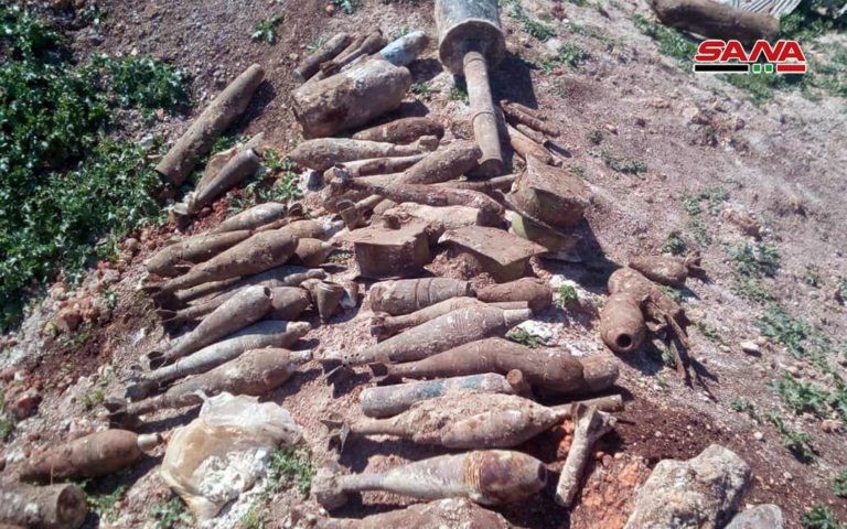 Các lực lượng vũ trang Syria phát hiện được kho vũ khí nhờ thông tin từ người dân địa phương trong khi tiến hành các hoạt động rà phá bom mìn, vật liệu chiến tranh trên vùng nông thôn miền bắc Homs.