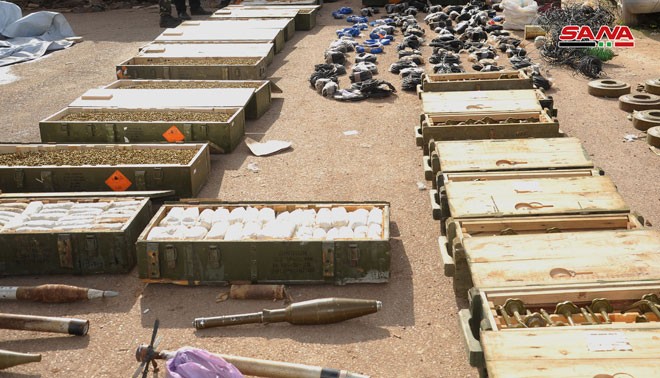 Theo thông tin từ SANA, quân đội Syria thu giữ một kho vũ khí rất lớn do Israel và Mỹ sản xuất được lực lượng Hồi giáo thánh chiến, chôn giấu trên vùng nông thôn phía đông tỉnh Daraa.