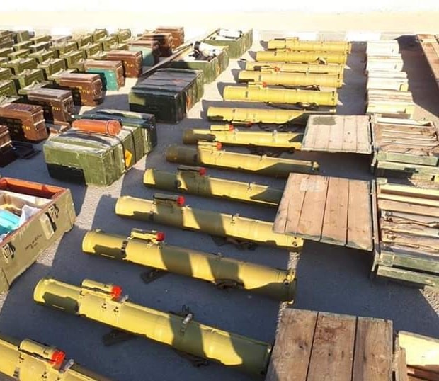 Trong số vũ khí tìm được có 13 tên lửa chống tăng có điều khiển Fagot do Bulgaria sản xuất, hai tên lửa bắn qua nòng pháo xe tăng có điều khiển 100mm 3UBK10M 9M117 Bastion do Nga sản xuất, một số đạn tên lửa mặt đất 122mmm Grad, một số ống tên lửa nhiệt áp RPO-A sử dụng một lần do Nga sản xuất, một số súng phóng lựu chống tăng M72 LAW sử dụng một lần do Mỹ chế tạo. Rất nhiều các băng đạn của súng máy hạng nặng và các loại đạn dược khác.
