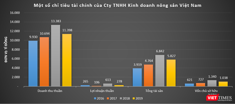 Đỉnh điểm là năm 2018, Vietnam Agribusiness ghi nhận doanh thu đạt 13.382,9 tỉ đồng, báo lãi sau thuế 612,9 tỉ đồng. Trên bảng cân đối, tính đến ngày 31/12/2019, tổng tài sản của Vietnam Agribusiness đạt 5.826,6 tỉ đồng, cao gấp 5,6 lần vốn chủ sở hữu.