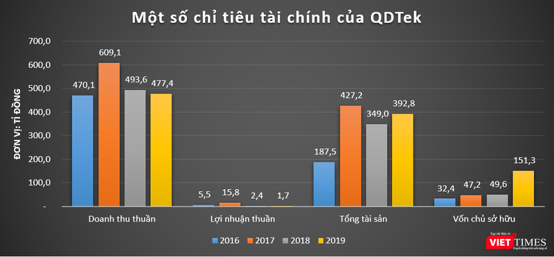 Dữ liệu của VietTimes cho thấy, trong giai đoạn 2016 – 2019, QDTek đều báo lãi, song biên lợi nhuận khá mỏng so với các thành viên khác cùng nhóm. Năm 2019, công ty này ghi nhận doanh thu 477,4 tỉ đồng, báo lãi mỏng 1,7 tỉ đồng.