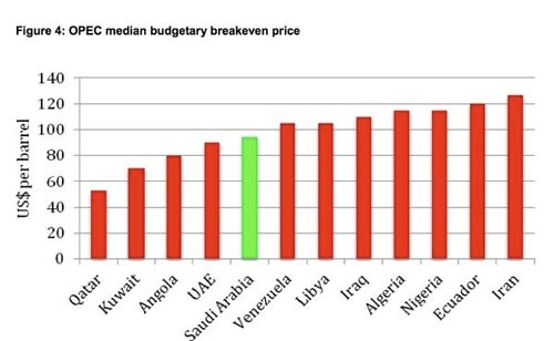 Giá dầu ngân sách của các nước OPEC (Nguồn: Energy Information Administration)