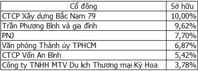 Về cơ cấu sở hữu, Xây dựng Bắc Nam 79 là cổ đông lớn nhất với tỷ lệ 10%. Tuy nhiên, tỷ lệ sở hữu của gia đình CEO Trần Phương Bình và các bên liên quan cũng đáng chú ý.