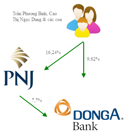 Ngoài ra, bà Cao Ngọc Dung là Chủ tịch HĐQT kiêm Tổng Giám đốc CTCP Vàng bạc Đá quý Phú Nhuận (PNJ) - cổ đông lớn sở hữu 7,7% DongA Bank.