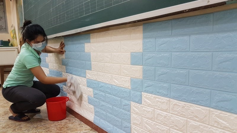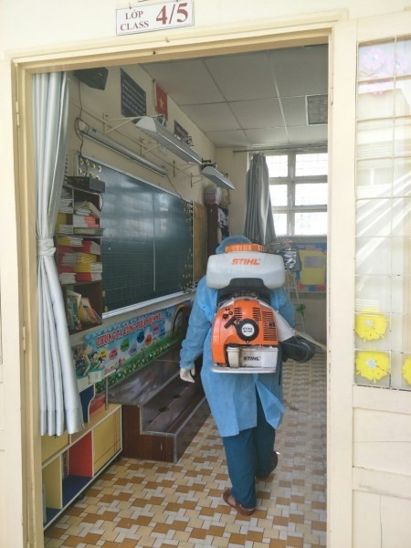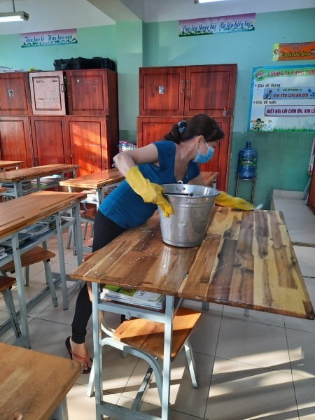 Công tác vệ sinh sát khuẩn mọi khu vực trong và ngoài phòng học được làm rất kỹ để chuẩn bị đón học sinh