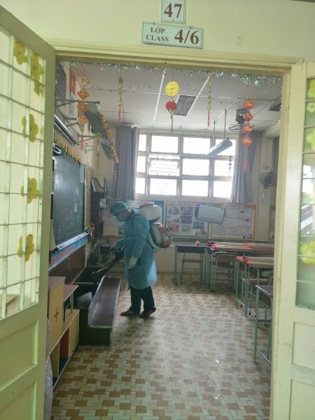 Công tác vệ sinh sát khuẩn mọi khu vực trong và ngoài phòng học được làm rất kỹ để chuẩn bị đón học sinh