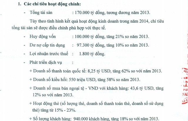 Được biết, tại Đại hội đồng Cổ đông thường niên 2014 của Eximbank, Chủ tọa đoàn đã trấn an các nhà đầu tư khi mục tiêu lợi nhuận năm 2013 bị phá sản hoàn toàn (828 tỷ đồng, tương đương với 26% kế hoạch): “Lợi nhuận năm 2013 thấp: bình quân lợi nhuận từ 2010 – 2013 của Eximbank là tương đối tốt (khoảng 2.500 tỷ đồng/năm). Năm 2014 – 2015 tin tưởng là sẽ tốt hơn”.
