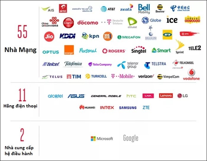 Danh sách nhà mạng, hãng điện thoại và nhà cung cấp hệ điều hành đồng ý với bộ cấu hình Universal Profile.