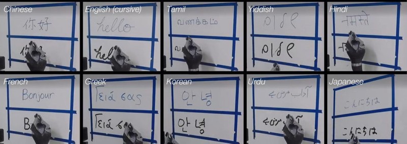 Rô bốt chữ viết tay đã có thể viết từ "Xin chào", được viết bởi nhiều người, bằng 10 ngôn ngữ khác nhau bao gồm tiếng Hy Lạp, tiếng Anh, tiếng Hindi, tiếng Trung Quốc và tiếng Pháp. Điều ấn tượng là robot chưa bao giờ thấy hầu hết các bản viết tay này vì thuật toán chỉ được đào tạo bạn đầu là sử dụng các ký tự Nhật Bản.