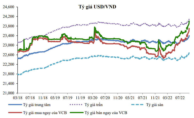 Về tỷ giá, do Fed vẫn đang trong xu hướng tăng lãi suất để ứng phó với lạm phát, đồng USD được dự báo sẽ lên giá và tiếp tục duy trì sức mạnh tương đối so với các ngoại tệ khác. Điều này khiến tỷ giá VND/USD tiếp tục chịu nhiều áp lực.