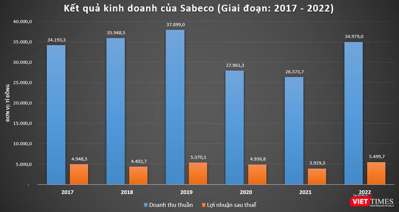 Khấu trừ chi phí, Sabeco báo lãi sau thuế 5.499,7 tỉ đồng trong năm 2022, tăng 39,9% so với năm 2021. Kết quả này vượt trội so với khoản lãi 626 tỉ đồng trong năm 2022 của Tổng công ty cổ phần Bia - Rượu - Nước giải khát Hà Nội (Habeco). Đây cũng là mức lãi cao nhất của Sabeco kể từ khi ThaiBev nắm cổ phần chi phối.
