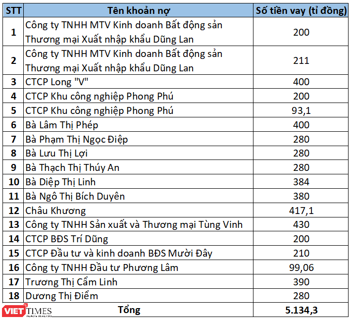 Trong khi đó, 9 khách hàng cá nhân có khoản nợ liên quan đến KCN Phong Phú ở Sacombank bao gồm các ông/bà: Lâm Thị Phép, Phạm Thị Ngọc Điệp, Lưu Thị Lợi, Thạch Thị Thúy An, Diệp Thị Linh, Ngô Thị Bích Duyên, Châu Khương, Trương Thị Cẩm Linh và Dương Thị Điểm.