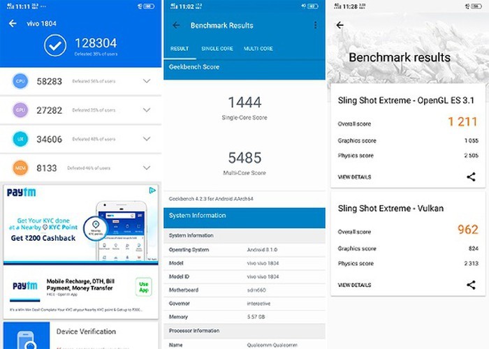Thấp hơn so với vi xử lý Snapdragon 660 bên trong Vivo V11 Pro (128.304 điểm), nhưng tốt hơn các thiết bị hỗ trợ Snapdragon 636 như Redmi Note 5 Pro, Nokia 6.1 plus hay ZenFone Max Pro.