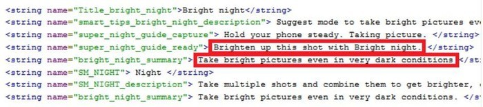 Bằng chứng đến từ đoạn mã mà XDA khám phá trong phiên bản thử nghiệm OneUI/Android Pie mới nhất dành cho Galaxy Note 9. Mã nhắc đến cái tên Bright Night và gồm các bình luận như Tăng sáng bức ảnh này với Bright Night, Chụp ảnh sáng ngay cả trong điều kiện rất tối, Chụp nhiều ảnh và kết hợp lại để có ảnh sáng hơn, rõ hơn khi thiếu sáng mà không dùng flash.