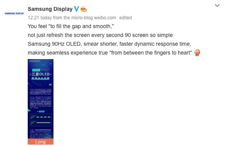 Hồi năm ngoái, hãng điện tử Hàn Quốc đã cho ra mắt dòng màn hình OLED 90Hz mới kèm tuyên bố đã tối ưu hóa khả năng hiển thị cho màn hình. Mới đây nhất, Samsung thậm chí còn khẳng định màn hình OLED 90Hz trên smartphone của hãng tốt ngang ngửa màn hình LCD 120Hz.