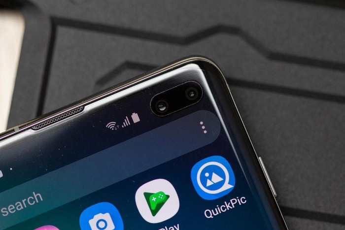 Theo trải nghiệm của Zing.vn, tấm dán này cũng sẽ có lỗ khoét ở phần camera trước. Tấm dán được làm từ chất liệu nhựa nên vẫn sử dụng được với cảm biến vân tay trên S10.