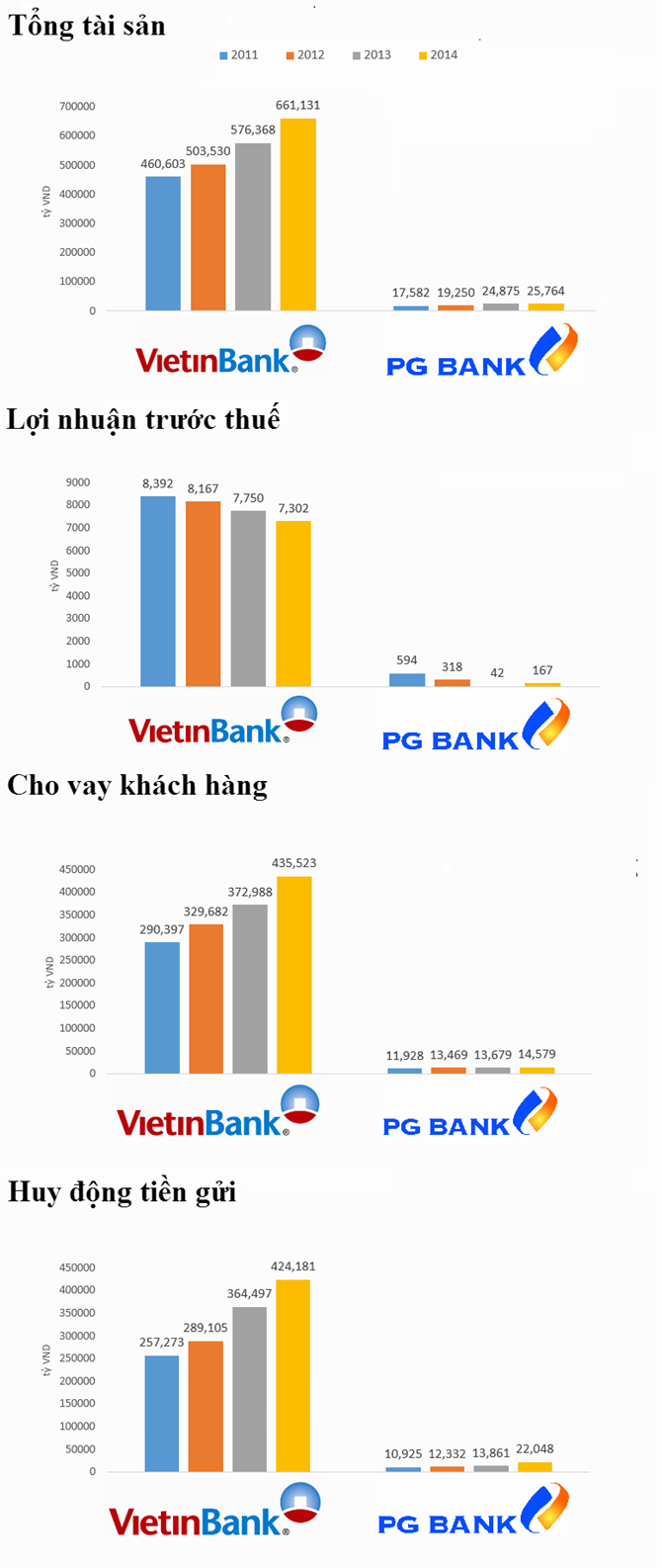 Trong giai đoạn 2010 - 2014, tỷ lệ tăng trưởng kép hàng năm của ngân hàng này là khoảng 12%, trong khi đó, dư nợ tín dụng với mức tăng trưởng kép hàng năm đạt khoảng 7,4%. Dư nợ từ các doanh nghiệp nhà nước và cá nhân chiếm tương ứng khoảng 15% và 19% tổng dư nợ của ngân hàng. Cũng trong giai đoạn này, tổng huy động của PG Bank với tăng trưởng kép hàng năm đạt 6,5%.