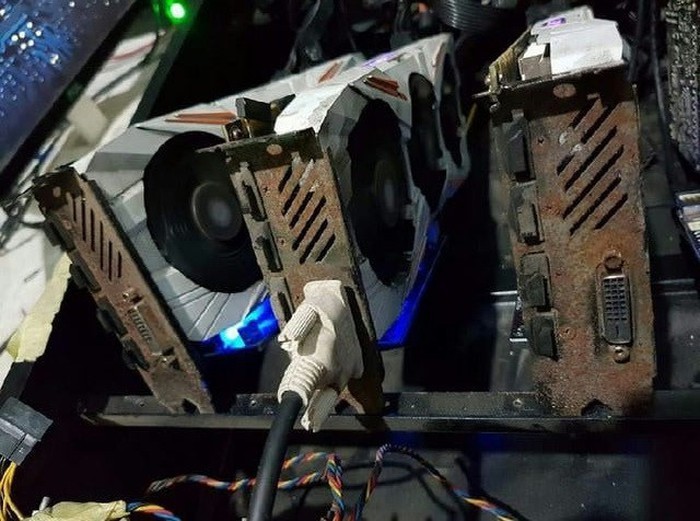 "Dân đào coin thường đặt các VGA thành dàn trong một phòng lớn và sử dụng điều hòa hoặc quạt công nghiệp để làm mát cho dàn 'trâu'. Điều này khiến cho quá trình oxy hóa diễn ra nhanh hơn và card trâu cày thường có ngoại hình khá xấu, các chi tiết kim loại bị gỉ sét nặng", anh Phúc chỉ ra một trong những cách phân biệt.
