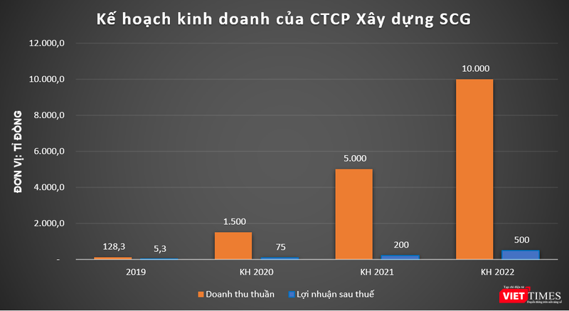 Năm 2020, SCG lên kế hoạch doanh thu thuần và lợi nhuận sau thuế lần lượt đạt 1.500 tỉ đồng và 75 tỉ đồng. Đến năm 2022, SCG đặt mục tiêu đạt mốc 10.000 tỉ đồng doanh thu và 500 tỉ đồng lợi nhuận sau thuế./.