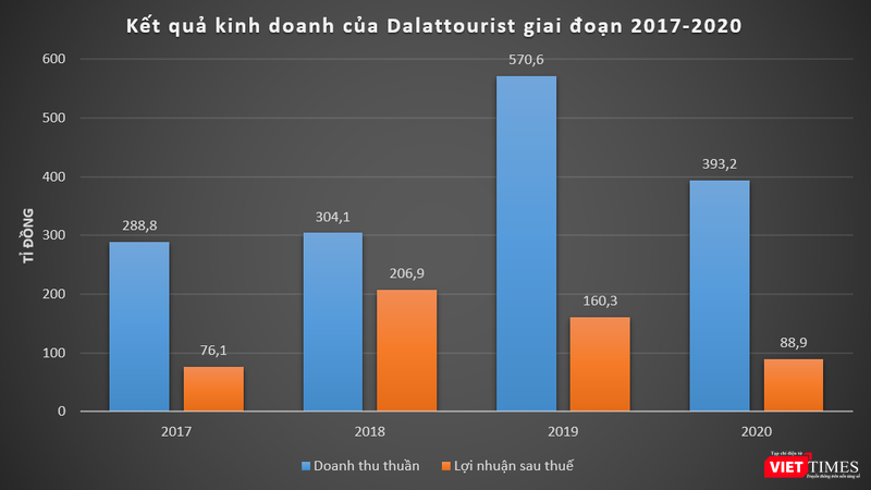 Năm 2020, Dalattourist ghi nhận doanh thu thuần đạt 393,2 tỉ đồng, giảm 31,1% so với năm 2019, chủ yếu do lượng khách đến Đà Lạt giảm mạnh. Lợi nhuận sau thuế đạt 88,9 tỉ đồng, giảm 44,5% so với năm 2019.