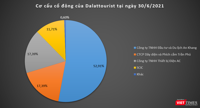 Cơ cấu cổ đông của Dalattourist khá cô đặc. Cụ thể, tính đến ngày 30/6/2021, công ty này có 4 cổ đông tổ chức nắm giữ 99,4% vốn điều lệ. Ngoài SCIC, Dalattourist còn 3 cổ đông lớn khác là Công ty TNHH Đầu tư và Du lịch An Khang (52,91% VĐL), CTCP Dây điện và Phích cắm Trần Phú (17,39% VĐL), và Công ty TNHH Thiết bị Điện AC (17,39% VĐL).