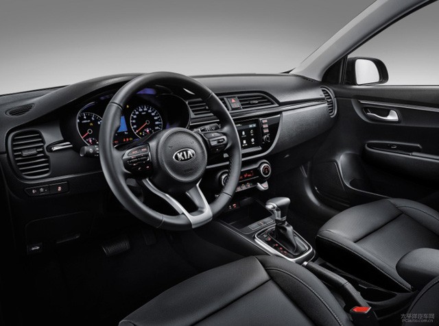 Một số chi tiết của Rio Hatchback 2017 được đưa vào bên trong Kia K2, trừ cụm đồng hồ, vô lăng 3 chấu tích hợp phím chức năng và nút chỉnh điều hòa. Ngay cả ghế ngồi bọc da cũng có thiết kế giống với Kia Rio Hatchback thế hệ mới.