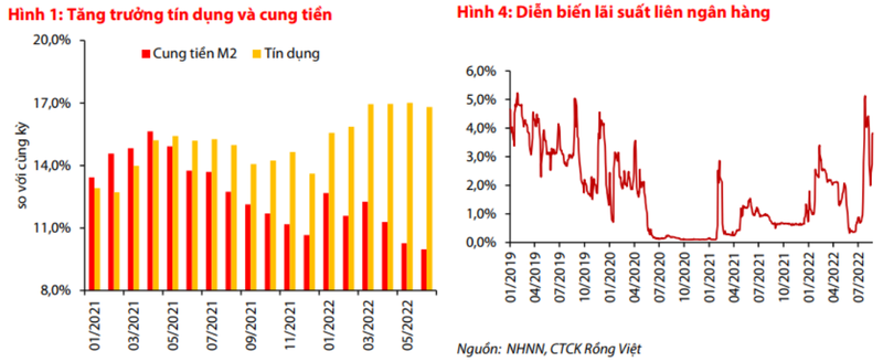 Mặc dù lãi suất huy động tăng cao nhưng huy động vốn vẫn lệch pha khá xa so với tăng trưởng tín dụng, tính đến cuối tháng 6/2022, tăng trưởng huy động vốn chỉ đạt 4,8% so với đầu năm. Tăng trưởng cung tiền cũng rất khiêm tốn, chỉ tăng 3,8% so với đầu năm.