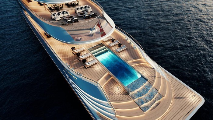 Các nhà phát triển đã mất 5 tháng để lên ý tưởng Aqua, siêu du thuyền được mô tả là rất yên tĩnh, ít tiếng ồn cũng như hạn chế các rung động.