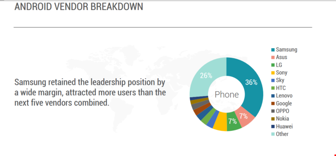 Khảo sát thị phần điện thoại Android tại Việt Nam quý III/2015. Nguồn: Appota.