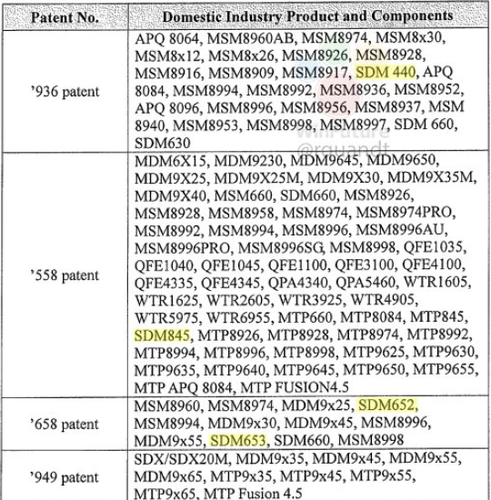 Và mặc dù Snapdragon 845 vẫn chưa được thông báo chính thức nhưng nó đã được hé lộ trong một bản thảo hồ sơ được Qualcomm gửi lên Ủy ban thương mại quốc tế ITC nhằm chống lại Apple. Qualcomm đang muốn yêu cầu áp đặt một lệnh cấm nhập khẩu đối với các sản phẩm iPhone vào Mỹ - một động thái trả đũa việc Apple ngừng trả tiền bản quyền. Hồ sơ được Qualcomm đưa ra có một danh sách những con chip SoC của hãng đã được cấp bằng sáng chế, trong đó có con chip với tên mã SDM845 – chính là Snapdragon 845.