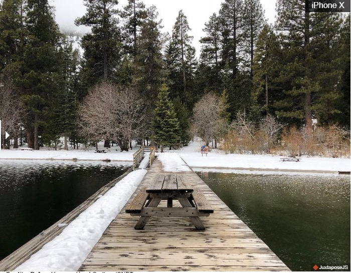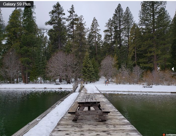 Cả Galaxy S9 và S9 Plus đều có camera kép với 2 khẩu độ thay đổi linh hoạt trên ống kính chính mang lại góc chụp khá rộng, đồng thời cho phép ống kính tự điều chỉnh trong bất cứ điều kiện ánh sáng nào. Chính vì thế trong bức ảnh chụp hồ nước này, Galaxy S9 Plus tạo nên hình ảnh trông mềm mại hơn, trong khi ảnh chụp bởi iPhone có nhiều nét tương phản và kết cấu rõ hơn.