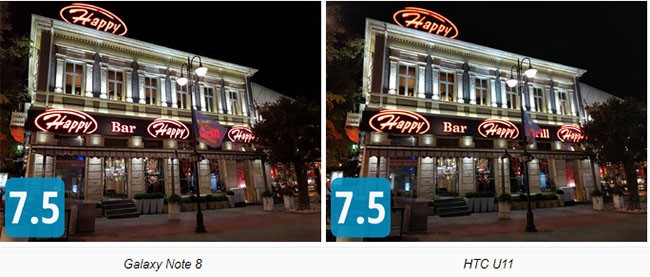 Trong bất kỳ trường hợp nào, Galaxy Note 8 và iPhone 8 Plus vẫn là hai chiếc điện thoại sở hữu camera “thần thánh” nhất. Mặc dù tính về điểm số, Note 8 đang dẫn đầu nhưng thực tế, cả hai chiếc điện thoại đều ngang bằng về khả năng “nhiếp ảnh” nói chung. Tuy rằng HTC U11 không tích hợp camera kép nhưng nó vẫn là một đối thủ đáng gờm. Chúng tôi rất vui khi biết rằng HTC vẫn là một trong những hãng tốt nhất khi nhắc đến hiệu suất của máy ảnh.