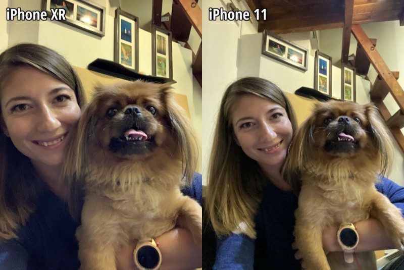 Góc nhìn hẹp của iPhone XR không cho phép phóng viên Phone Arena thoải mái lấy trọn 2 đối tượng trong khuôn hình. Ưu điểm là khuôn mặt không bị biến dạng hay hiệu ứng mũi to. Các chi tiết hơi bị mềm (không sắc nét) và ảnh hơi bị ám vàng xanh. Nhưng dải màu động có vẻ ấn tượng khi các chi tiết trong vùng sáng và vùng tối thể hiện khá tốt.