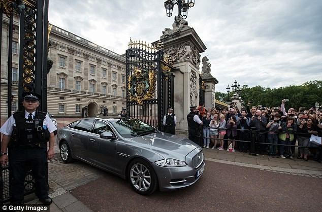 Đó là một chiếc Jaguar XJ Sentinel thuộc đoàn xe được sử dụng từ thời của cựu thủ tướng Anh David Cameron, với khả năng chống đạn mức độ cao nhất - B7, theo tiêu chuẩn châu Âu CEN. Ảnh: Sun