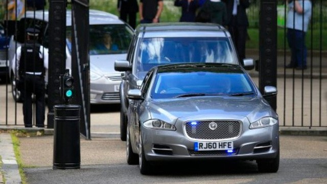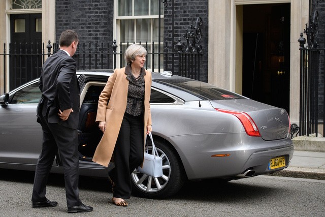 Không chỉ có một chiếc Jaguar XJ Sentinel, có lúc Thủ tướng Theresa May dùng chiếc màu xanh, có lúc dùng chiếc màu xám. Ảnh: Getty