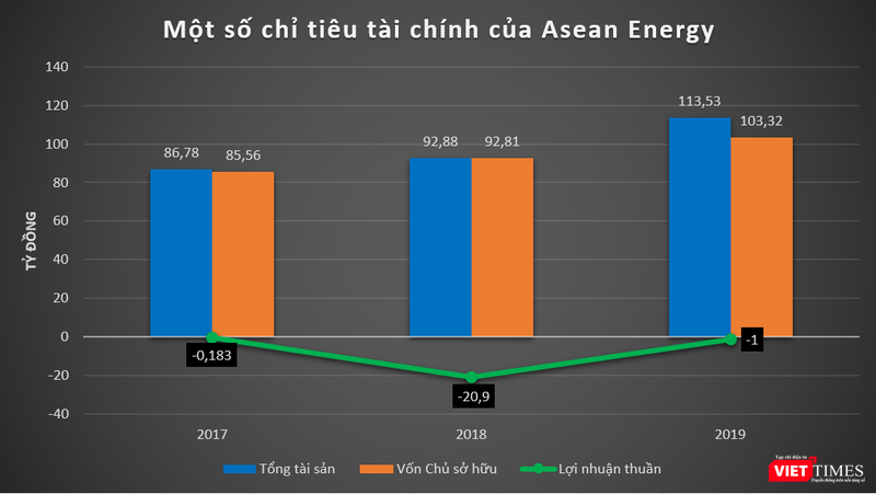Về kết quả kinh doanh, năm 2018, Asean Energy không phát sinh doanh thu. Sang năm 2019, doanh thu thuần của doanh nghiệp này đạt 520 triệu đồng; lỗ sau thuế ở mức 1 tỷ đồng, trong khi năm 2018 lỗ 20,9 tỷ đồng.