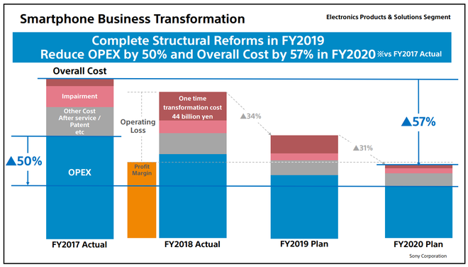 Sony cho biết hãng mong muốn mảng di động sẽ có lãi vào năm 2020, thông qua việc giảm chi phí hoạt động còn một nửa so với năm 2017. Ngoài ra, Sony cũng mong muốn mảng di động sẽ làm việc chặt chẽ hơn với các bộ phận còn lại trong mảng điện tử của Sony như máy ảnh, âm thanh, hình ảnh để đem đến những chiếc smartphone hấp dẫn hơn, ví dụ như chiếc Xperia 1 mà Sony ra mắt gần đây.