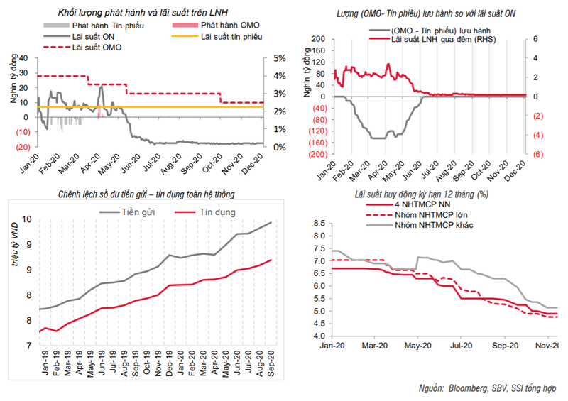 SSI cho rằng, thanh khoản các NHTM vẫn rất dồi dào nhưng dư địa giảm thêm của lãi suất tiền gửi không còn nhiều, xu hướng ngắn hạn sẽ là đi ngang.