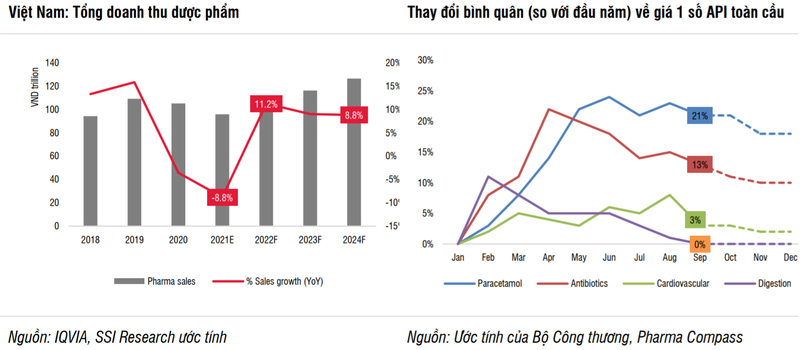 Bên cạnh đó, nhiều bệnh viện ở miền Nam được chuyển đổi thành trung tâm điều trị Covid-19 cũng khiến doanh thu dược phẩm giảm đáng kể, do kênh bệnh viện chiếm hơn 60% nhu cầu của ngành.