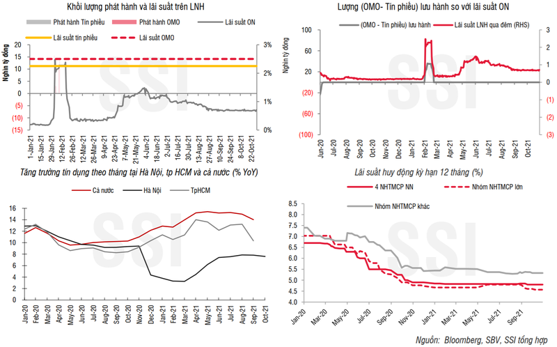 Theo SSI, các tổ chức tín dụng sẽ tiếp tục điều chỉnh giảm nhẹ mặt bằng lãi suất huy động và cho vay trong quý 4/2021.