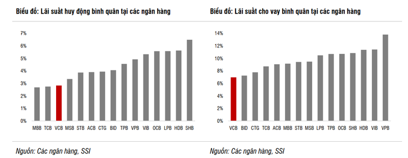 Sang năm 2023, chuyên gia SSI kỳ vọng Vietcombank sẽ linh hoạt hơn trong việc điều chỉnh lãi suất cho vay phù hợp với chi phí vốn tăng lên mà không ảnh hưởng đến khả năng trả nợ của khách hàng, do lãi suất cho vay tại nhà băng này đã thấp hơn nhiều so với các đơn vị cùng ngành.