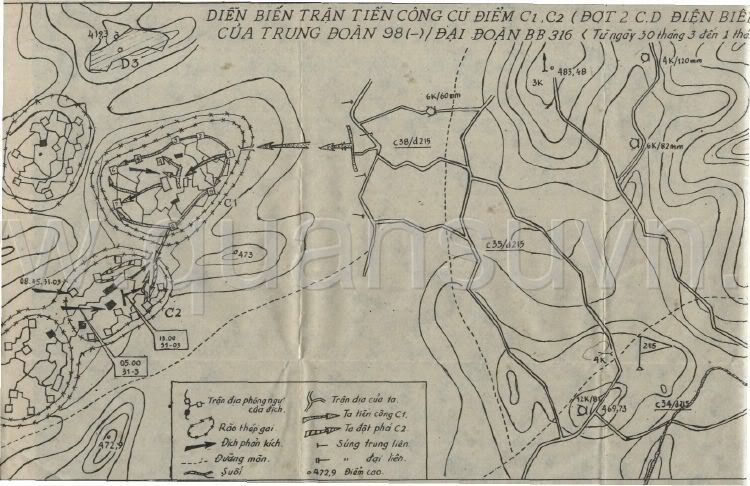 Ngoài các cụm pháo binh chiến dịch có nhiệm vụ chi viện chung và kiềm chế pháo binh địch, những đơn vị pháo còn lại đều tăng cường cho các đại đoàn, chi viện cho bộ binh tiêu diệt các cứ điểm C1,C2, A1, A2, 505, 506 phía Đông và các cứ điểm 311A, 311B phía Tây sân bay.
