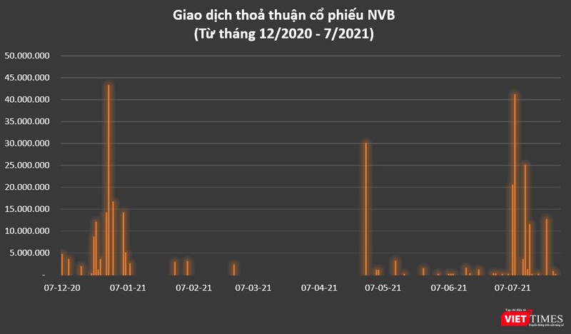 Tính từ đầu tháng 7/2021 tới trước thềm EGM 2021, có tới 116,1 triệu cổ phiếu NVB (tương đương với 28,3% vốn điều lệ của NCB) đã được trao tay qua phương thức thoả thuận. Trong đó, như VietTimes từng đề cập, gần 62 triệu cổ phiếu NVB (tương đương 15% vốn điều lệ) được sang tay chỉ trong hai phiên giao dịch./.
