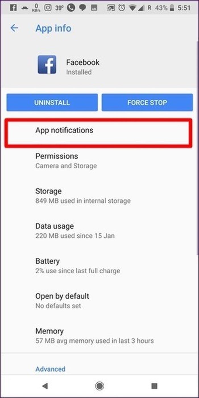 Bước 2: Bấm Facebook > App notifications