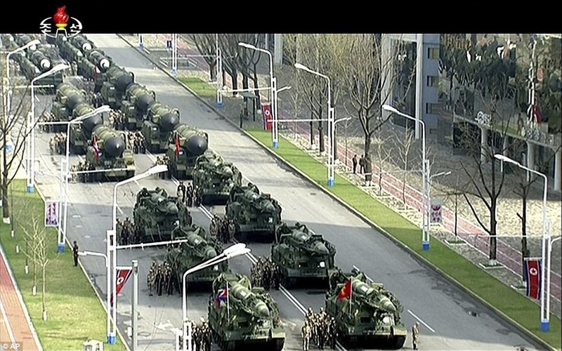 VietTimes -- Ngày 15.04.2017, Triều Tiên tiến hành một cuộc duyệt binh khổng lồ chào mừng ngày sinh nhật của cố chủ tịch Kim Nhật Thành. Tham gia cuộc diễu hành quân sự là đại diện các quân binh chủng quân đội Triều Tiên và nhiều loại vũ khí uy lực của quốc gia này, trong bối cảnh căng thẳng chiến tranh với Mỹ tăng cao.