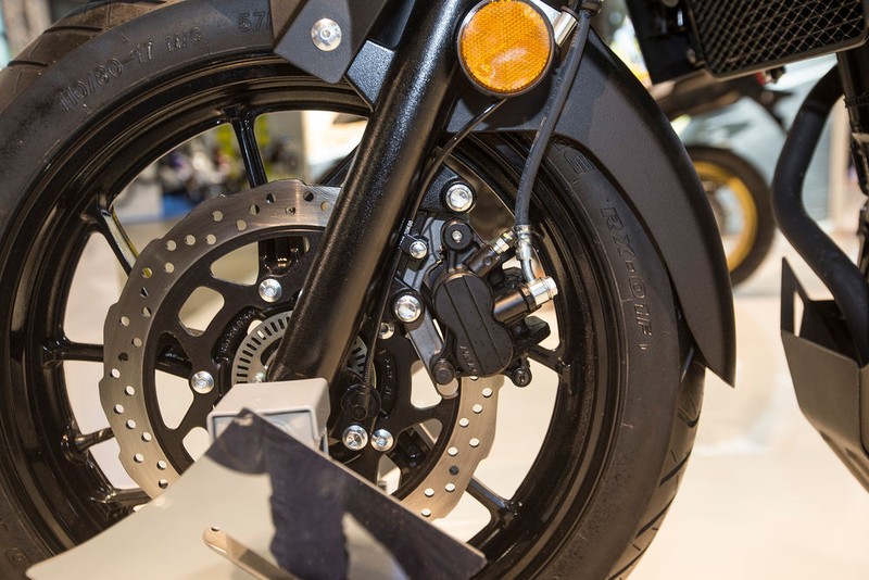 Lốp trước có kích thước 110/80, và 140/70 cho lốp sau, cỡ vành 17 inch. Lốp xe tiêu chuẩn mà hãng trang bị có vẻ như không phù hợp với việc chạy địa hình, nhưng người sở hoàn toàn có thể thay thế theo ý muốn. Phanh ABS cũng là một trang bị trên mẫu xe này và hệ thống ABS này do Bosch sản xuất
