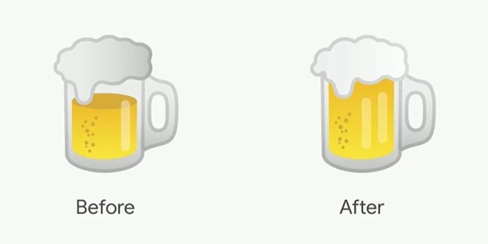 Pichai tiếp tục nói rằng, sau khi biểu tượng cảm xúc đó đã được sửa lại (ông nói đùa rằng: "tôi không biết rằng nhiều người quan tâm đến vị trí miếng pho mát đến vậy"), lại có thêm một điều khác đáng chú ý: biểu tượng cốc bia chỉ đầy có một nửa nhưng lại có bọt tràn lên miệng cốc (ảnh trên bên trái).